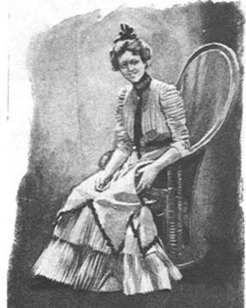 "Była młodą blondynką, drobną, delikatną, dobrze odzianą w rękawiczki i ubraną w najdoskonalszy gust. Jej twarz nie miała ani regularności rysów, ani piękna cery, ale jej wyraz był słodki i sympatyczny, a jej duże niebieskie oczy były wyjątkowo duchowe i sympatyczny".