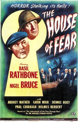 The House of Fear is a 1945 Sherlock Holmes crime horror filmstarring Basil Rathbone and Nigel Bruce. Directed by Roy William Neill, it is loosely based on the 1891 short story "The Five Orange Pips" by Arthur Conan Doyle. It is the 10th film of the Rathbone/Bruce collaboration as Holmes and Dr. Watson.